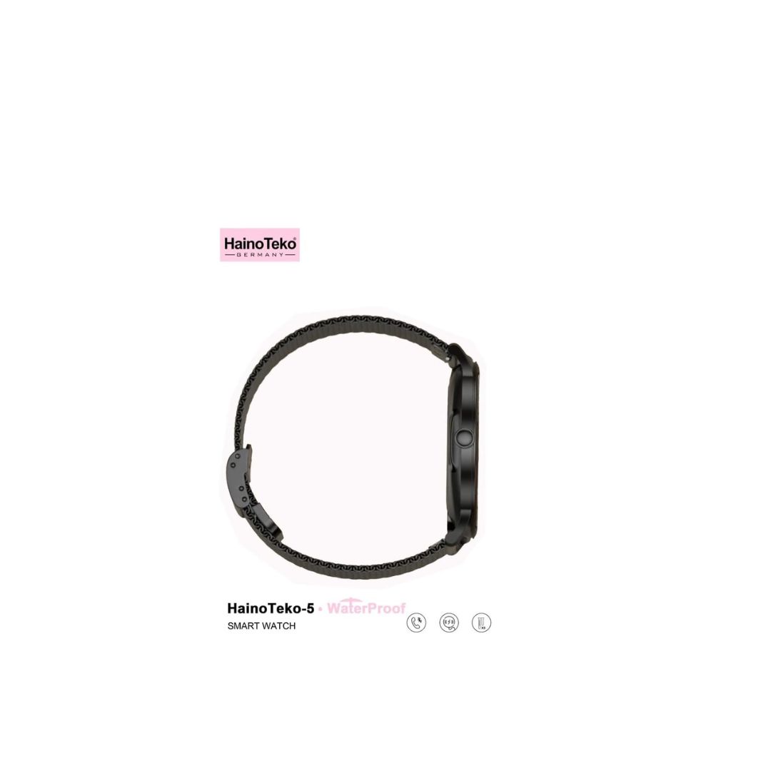 HainoTeko HainoTeko-5 Super Slim AMOLED Display Smart Watch With Waterproof AI Voice Assistance and 3 Pair Straps For Ladies (Black)