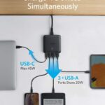 Power up to four devices simultaneously. The USB-C port delivers up to 45W for laptops or high-power devices, while the three additional USB-A ports share a combined 20W for smartphones, tablets, and other devices.