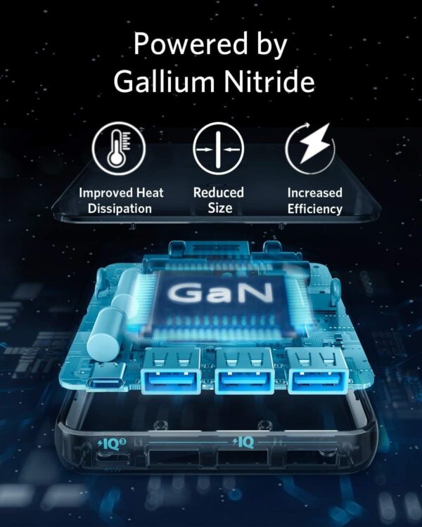 Using advanced gallium nitride (GaN) technology instead of traditional silicon, this charger achieves superior energy efficiency, generates less heat, and comes in a compact, lightweight design ideal for travel.