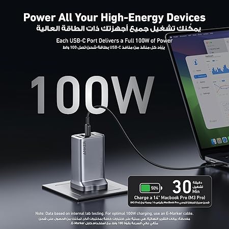 Charge all your devices quickly and safely with the Anker Prime 100W 3-Port GaN Charger. Featuring advanced GaN (Gallium Nitride) technology, this compact charger delivers high-speed power in a sleek silver design, making it perfect for home, office, or travel.