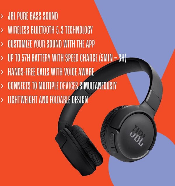 JBL Tune 520BT Wireless On-Ear Headphones β Pure Bass Sound | 57-Hour Battery