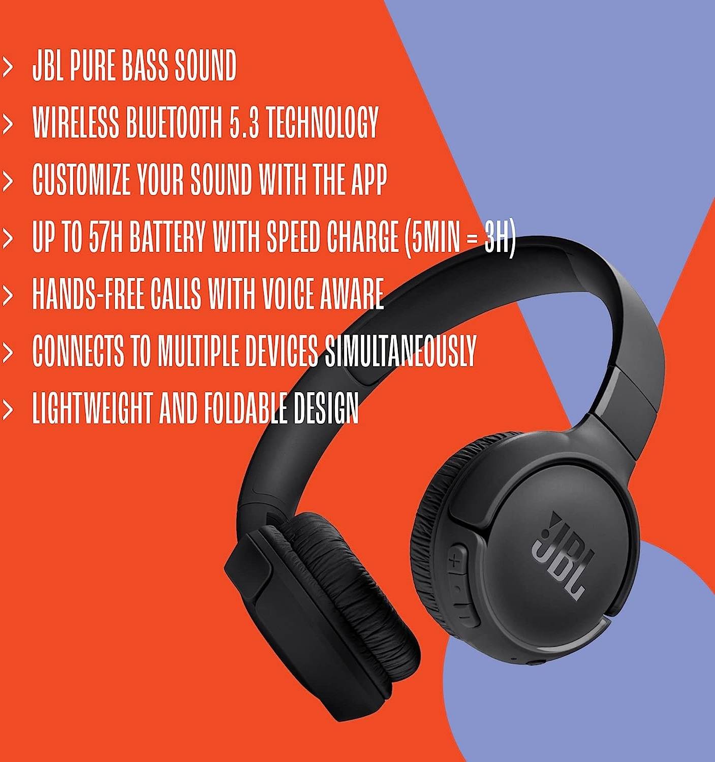 Seamlessly switch between devicesβif a call comes in while watching a video on another device, the headphones instantly switch to your mobile phone. Lightweight, comfortable, and foldable, the JBL Tune 520BT is designed for long listening sessions and easy portability in your backpack.