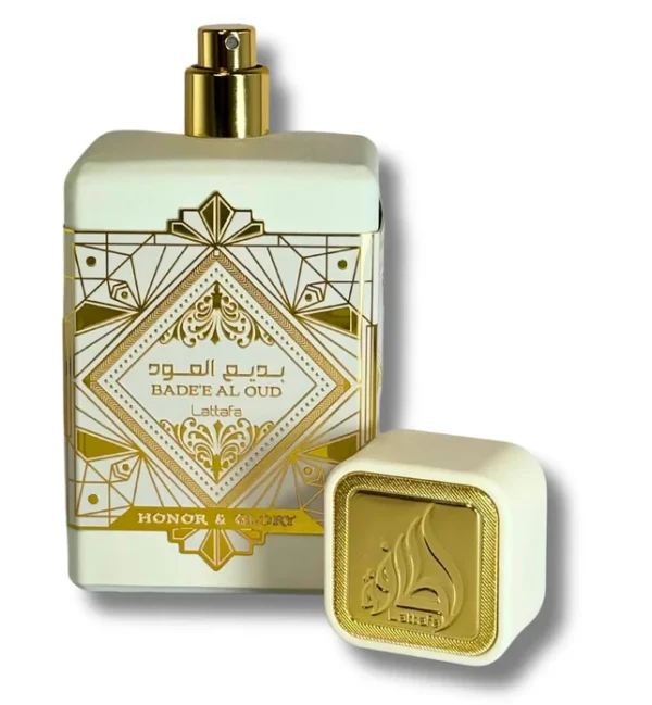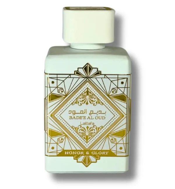 Bade’e Al Oud Honor & Glory by Lattafa Perfumes is a captivating unisex fragrance launched in 2023. This modern release blends sweet gourmand notes with warm spices and creamy woods, creating a bold yet refined scent suitable for both women and men.