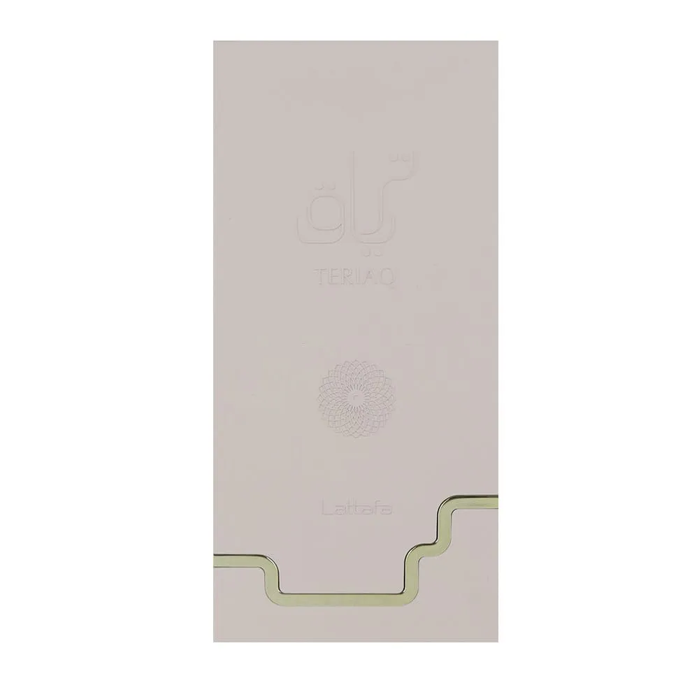 Packaged as a 3.4 oz (100ml) Eau de Parfum spray, Teriaq combines modern elegance with Middle Eastern craftsmanship. Its unisex appeal makes it versatile for daily wear, formal occasions, or as a standout signature scent.