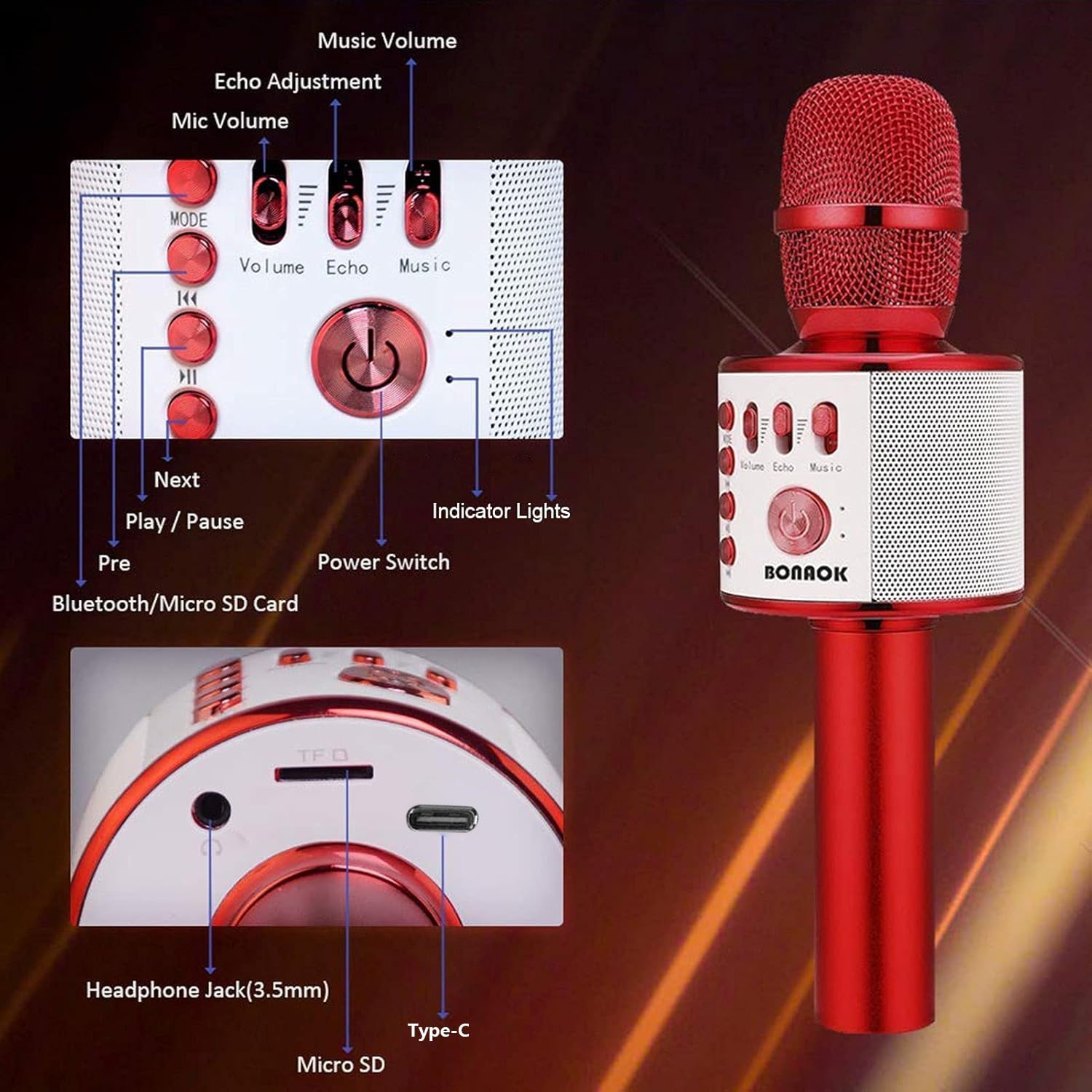 Easy to Use β Multi-function buttons let you switch modes and adjust microphone, echo, and music volume separately. The echo mode adds immersive surround sound, perfect for karaoke fun.